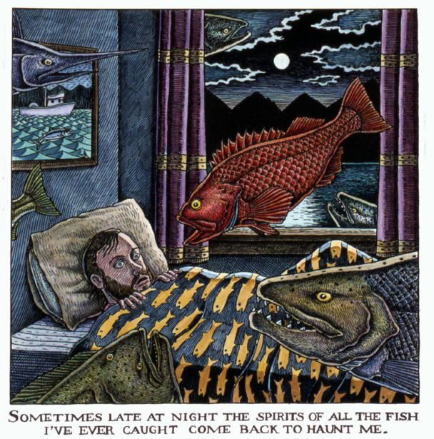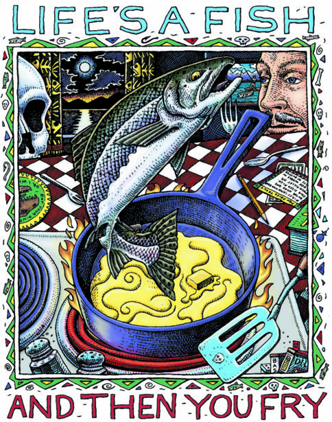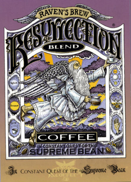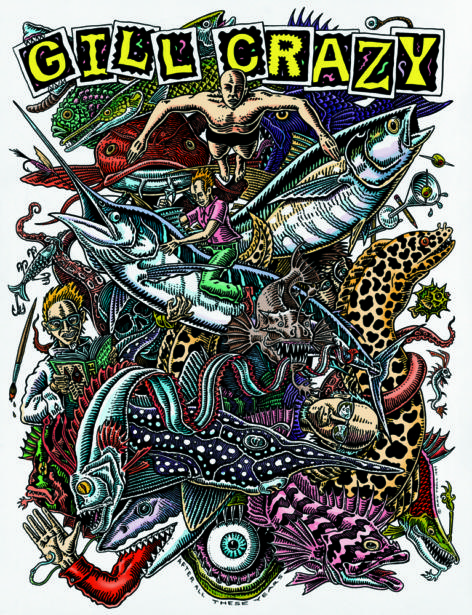 In the early 90’s my t-shirt line started to take off, with many new retail outlets carrying my work. I also collaborated with my friend Michael Beech at Raven’s Brew Coffee in designing a whole slew of unique coffee labels. I worked on a number of large touring museum exhibits during those years: Planet Ocean (Dancing to the Fossil Record), Sharkabet: a Sea of Sharks from A to Z, Cruisin’ the Fossil Freeway, Amazon Voyage: Vicious Fishes and Other Riches, and Blue Seas, Green Seas. Most of the museum shows grew out of book projects.