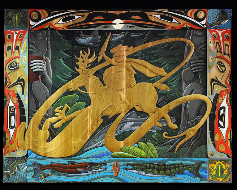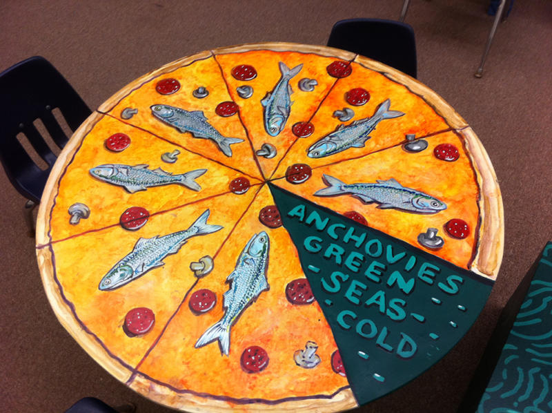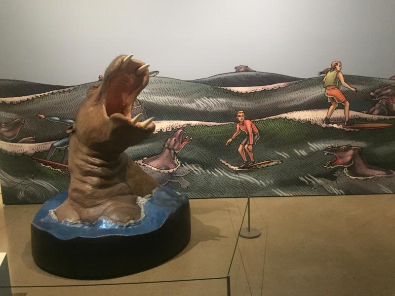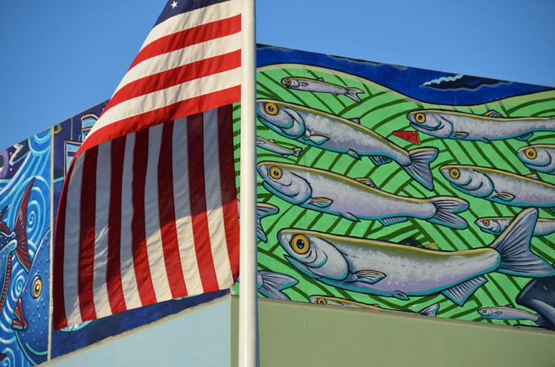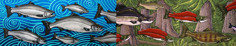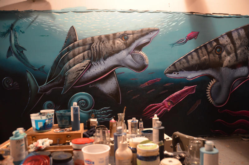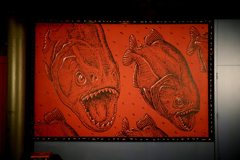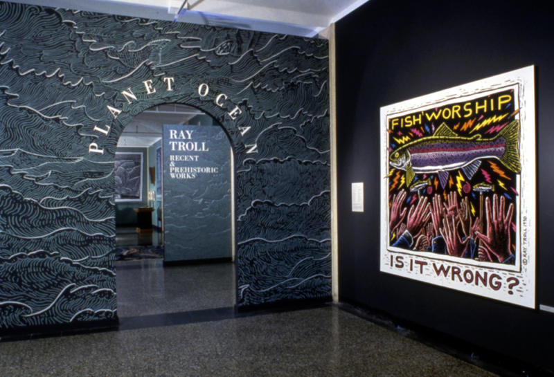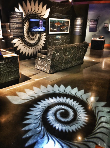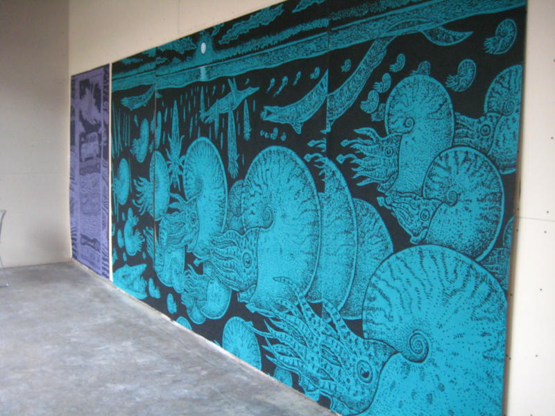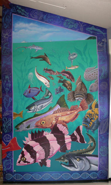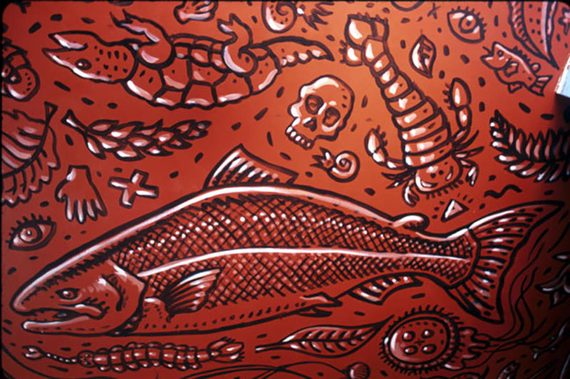 Here are a few smaller exhibits and side projects, including the Blue Seas, Green Seas mural and exhibit, a special ‘Saber Toothed’ salmon museum installation, snowboards, painted floors and the “Prairie Ocean” show in Lindsborg, Kansas.