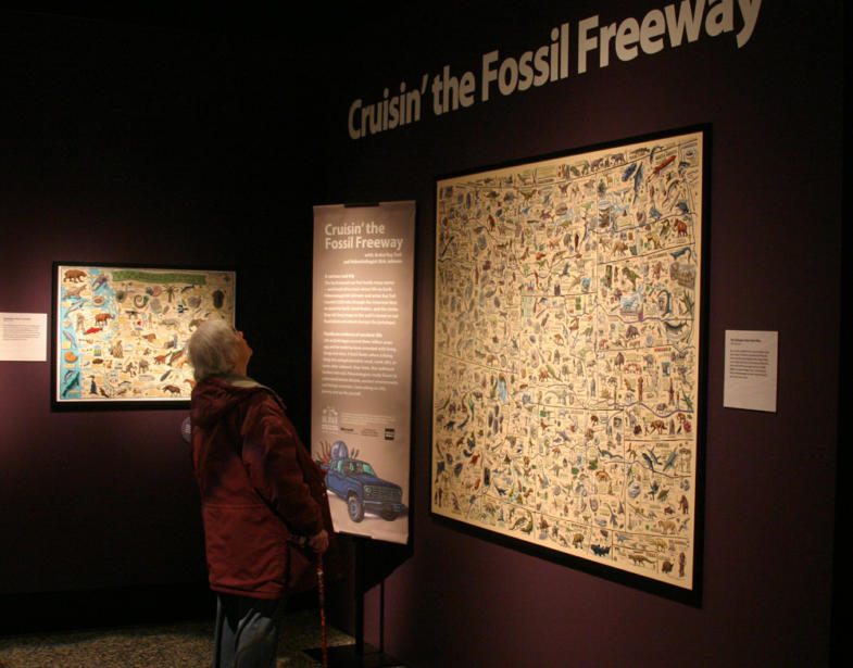“Cruisin’ the Fossil Freeway” created in 2009 with the Burke Museum Seattle, WA, Touring venues for the traveling version of the exhibit: The Burke Museum, Seattle, WA, the Putnam Museum, Davenport, IA, Academy of Natural Sciences, Philadelphia, PA, Paleontological Research Institution, Ithaca, NY, Museum of the Gulf Coast, Port Arthur, TX, Florida Museum of Natural History, Gainesville, FL, Michigan State University Museum, East Lansing, MI, Washakie Museum and Cultural Center, Worland, WY, Museum of Natural and Cultural History, Eugene, OR, Hastings Museum, Hastings, NE, Georgia College Museum, Milledgeville, GA, Schiele Museum of Natural History, Gastonia, SC