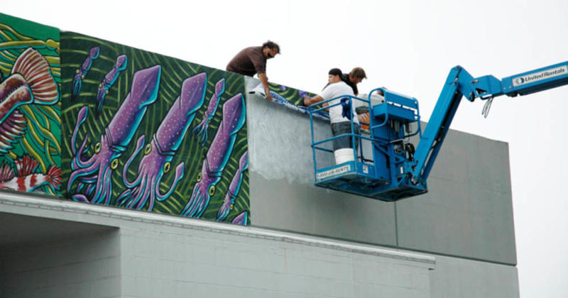 I’ve been lucky enough to work with numerous talented artists over the years, painting on-the-spot improvisational murals, or working with volunteers to do large projection paintings as well as various other large scale works. It’s an honor and a privilege to say the least, working with such talented folks. It’s humbling to be working with talents like Memo Jauregui, Roberto Salas, Dave Rubin, Donnie Varnell, Gary Staab and Terry Pyles. And then there’s the Ratfish Wranglers…