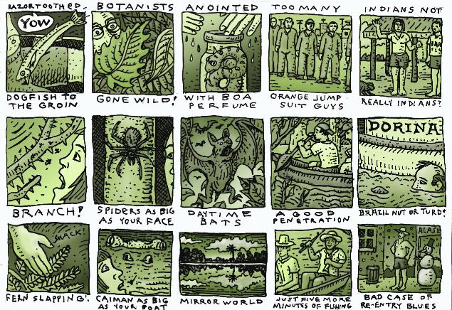 It’s a lovely homage to the Amazon’s most feared fish! Animation was done by Aubrey Mintz for the Miami Science Museum’s Amazon Voyage exhibit.There were 24 of us in all, along with a crew of seven aboard the magnificent riverboat Dorinha. We spent two weeks in March of 2009 exploring the Solimoes and Rio Negro Rivers, part of the vast network of rivers known as the Amazon. Our captain was Moacir Fortes and this was my fourth trip with the legendary “Mo”. It was also my fourth river journey with paleobotanist Kirk Johnson our trip organizer. As always Kirk had assembled a wide array of adventurers: scientists, artists, photographers, pilots, UPS-raconteurs, shop-keepers, marketing experts, musicians, and one ventriloquist.