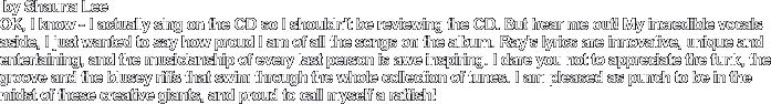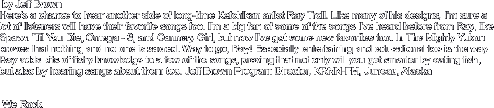 | Jeff Bown’s audio interview with Ray about the CD (Jeff is from KTOO, FM Juneau). Click here. |