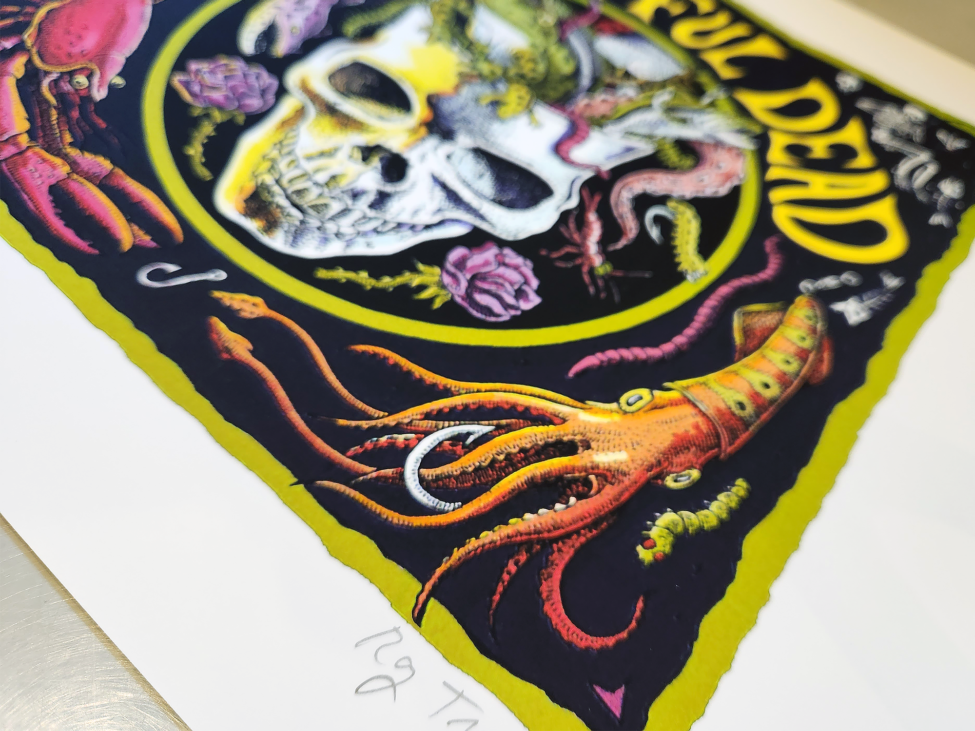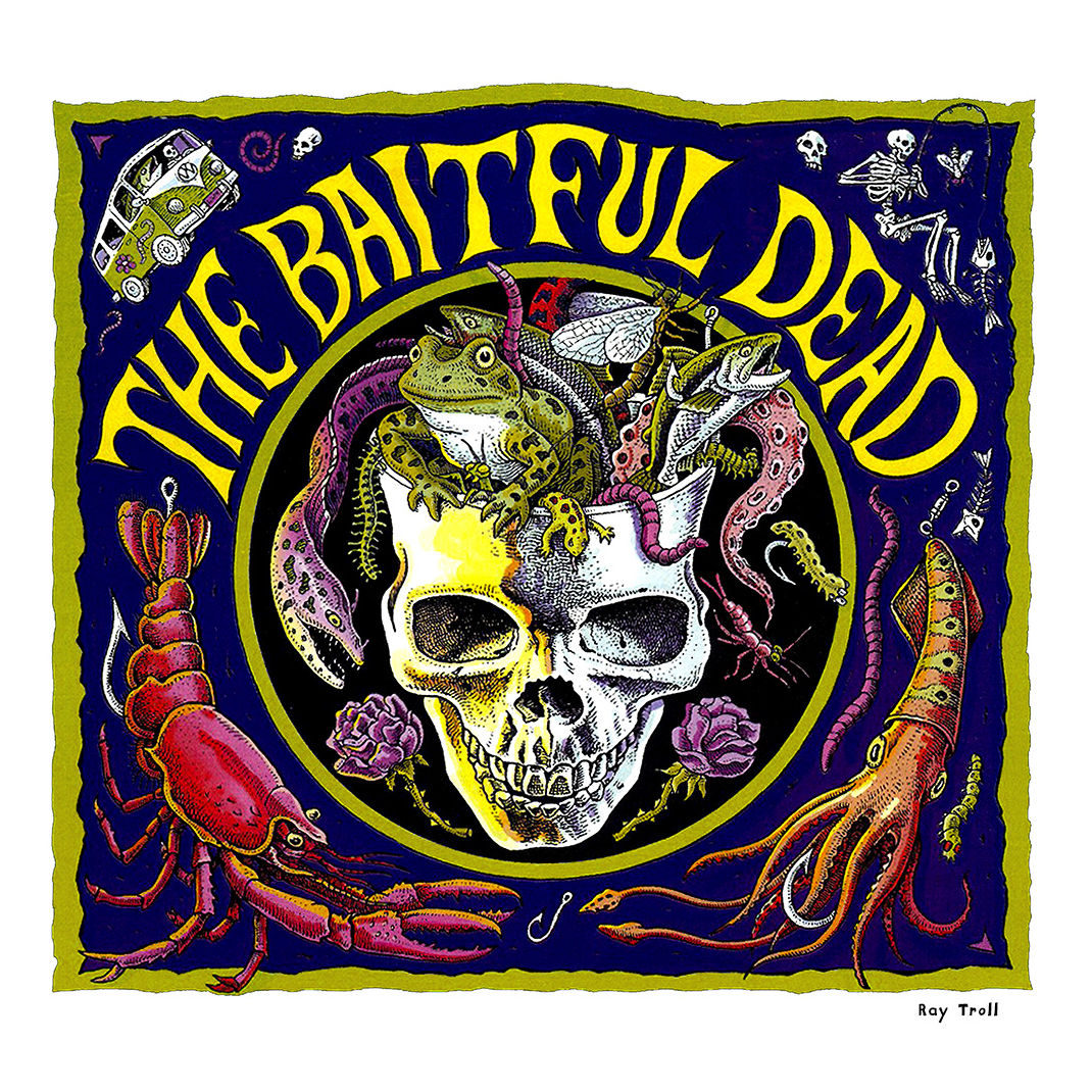 This is my slightly warped tribute to the world’s original jam band the Grateful Dead, featuring a skull-full of slithering little creepy crawlies, including squid, crawdads, octopus, eels, frogs, insects and more. Mmmm, tasty.