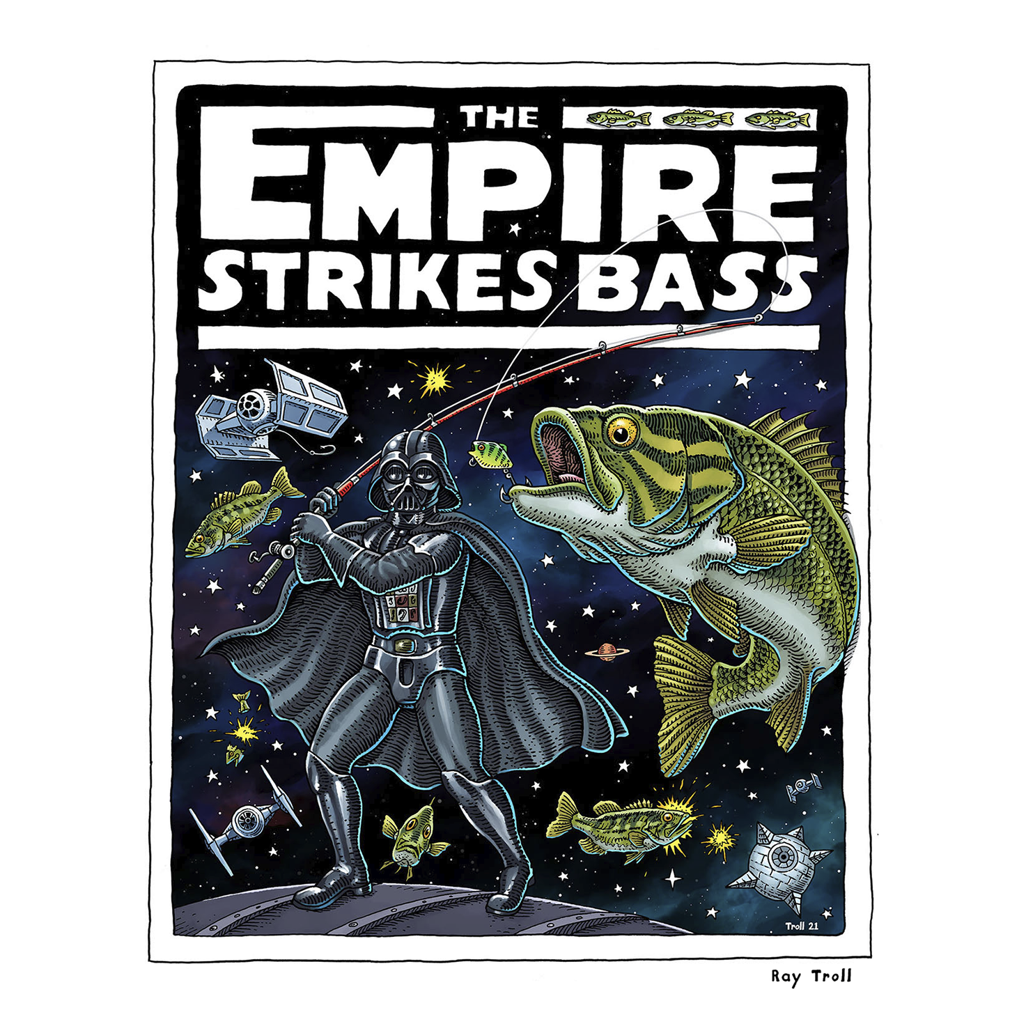 Who woulda’ thought that the Dark Lord himself had a secret penchant for bass fishing? Every now and then even an evil guy’s gotta put down the light saber and pick up a fishing rod to enjoy the simple pleasures of a fish striking your line. Well at least in my mind that’s how it works.