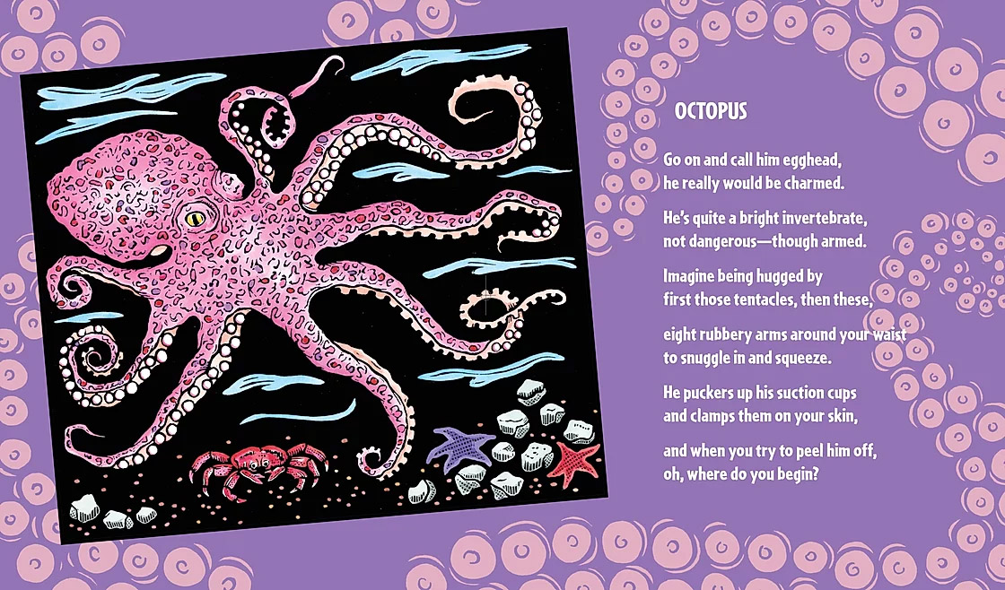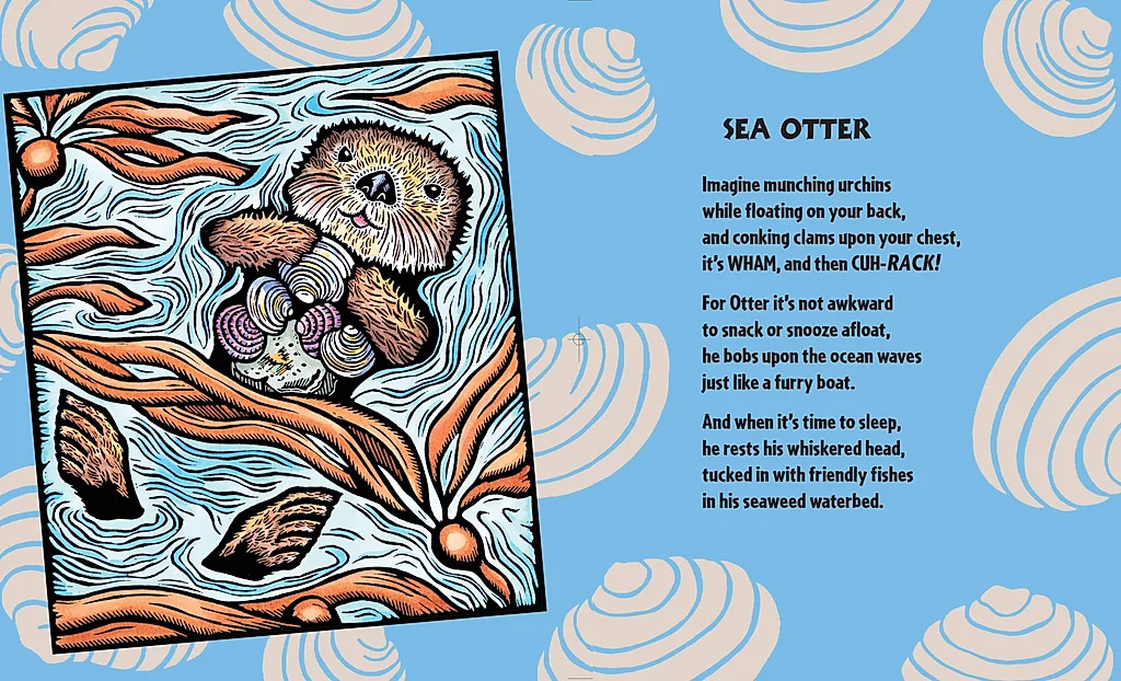 “This humorous rhyming revue features 15 animals from the North. Accompanied by exuberant hand colored linocuts, doggerel verse sings the eccentricities of each critter…Zerbetz’s eye-grabbing illustrations raise the energy level with their dynamic lines and vibrant composition.”