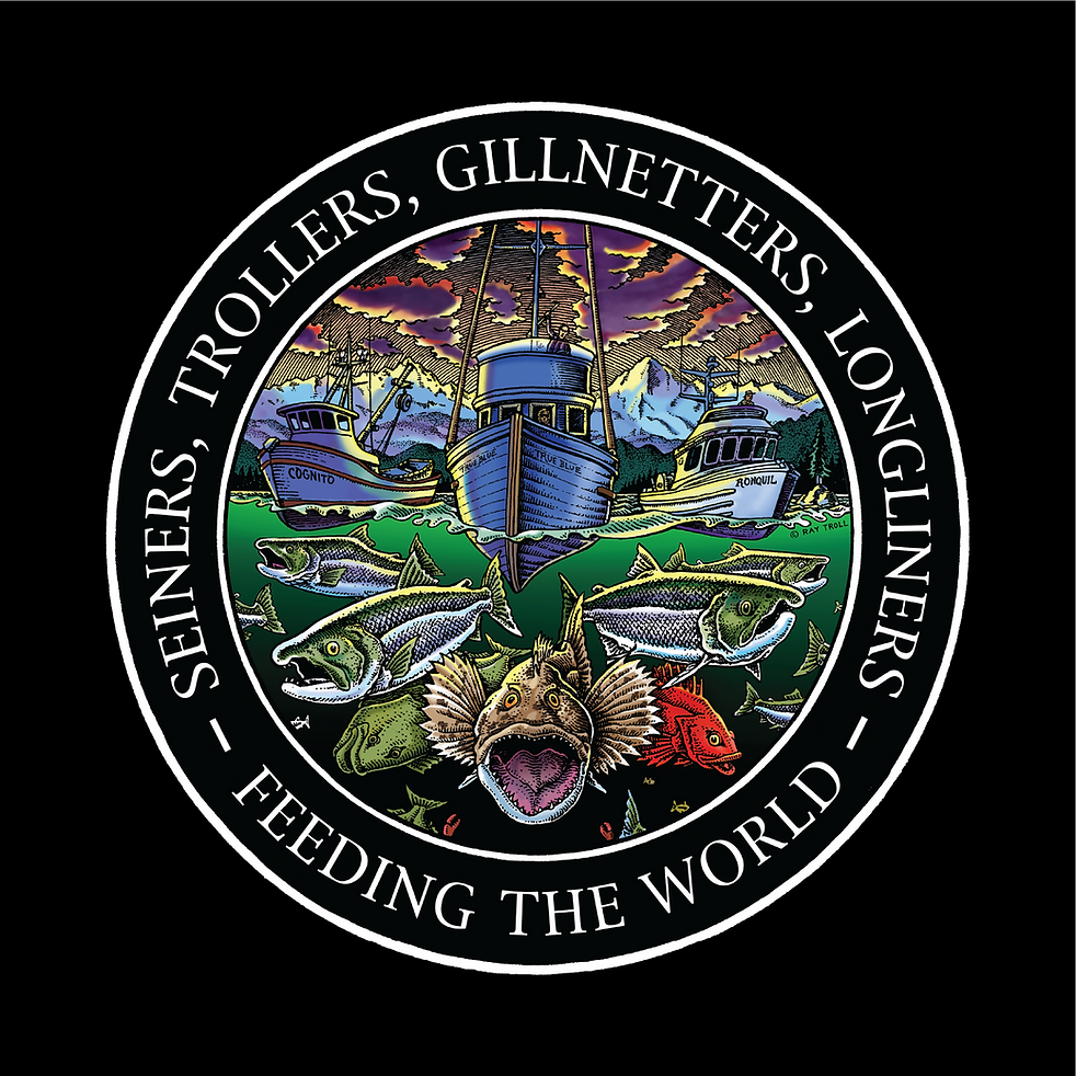 Seiners, trollers, gillnetters and longliners are the main commercial fishing ‘gear’ groups that fish the waters of the North Pacific. That’s a bigmouthed lingcod dead center with salmon, rockfish and halibut sprinkled about. Eat more fish! It’s great for your brain, your heart and your eyesight.