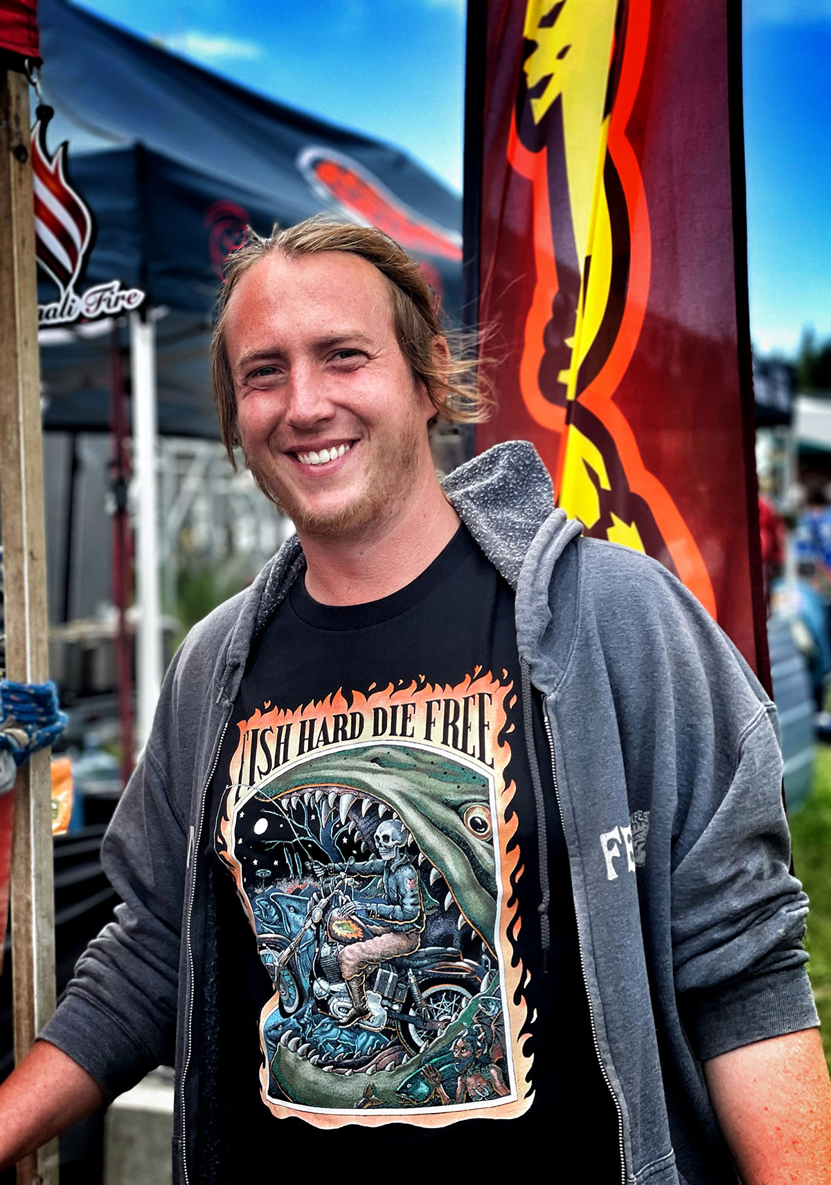 Skeletons riding Harleys, red devils, flames, fishing poles, giant snarling fish and oblique references to the infamous 15th century Dutch painter Hieronymus Bosch. What else do you need?