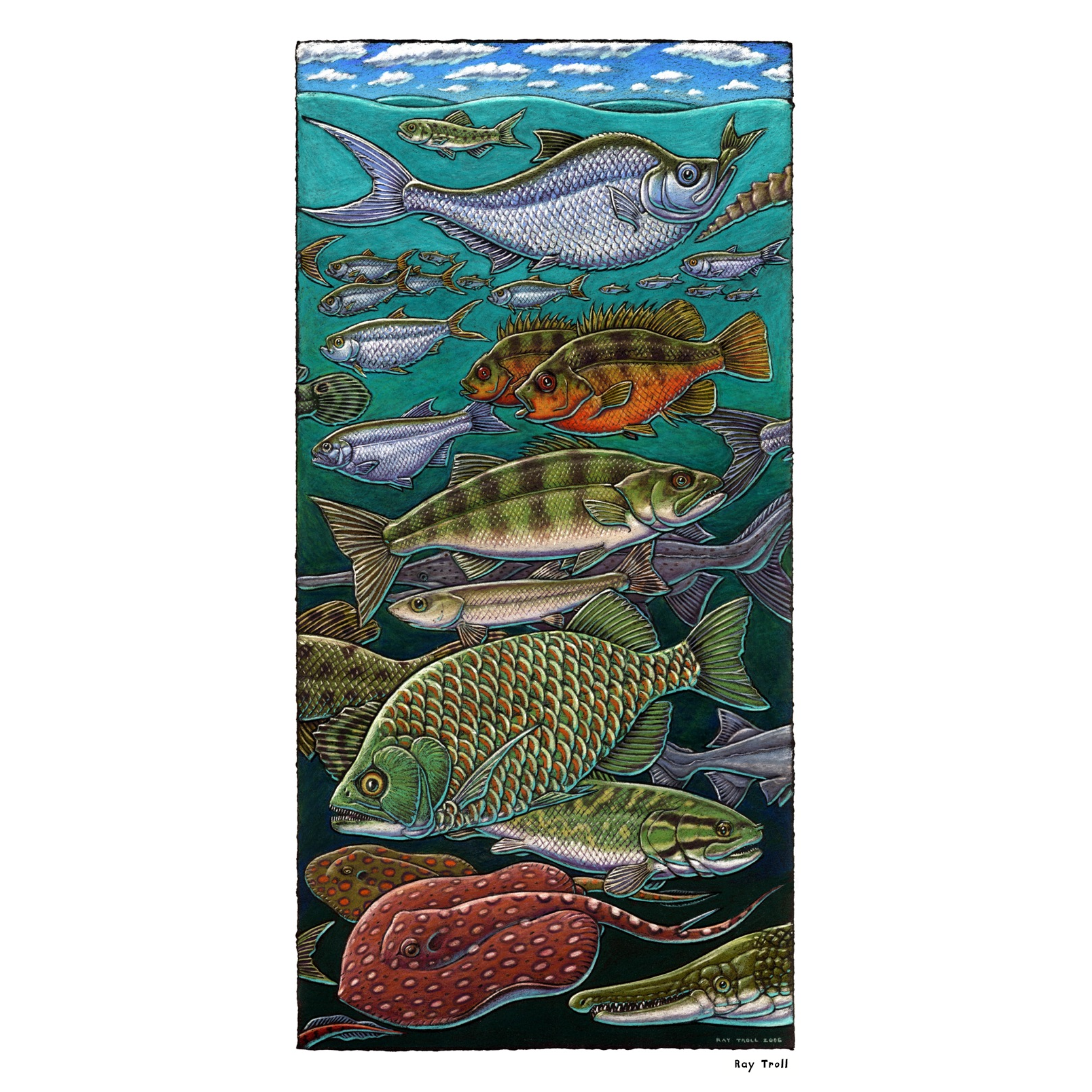 Ray Troll’s fine artwork printed with high quality, lightfast inks on heavyweight acid-free paper. Shipped in sturdy round tubes.