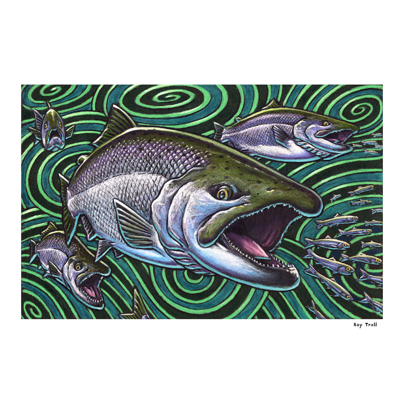 Ray Troll’s fine artwork printed with high quality, lightfast inks on heavyweight acid-free paper. Shipped in sturdy round tubes.