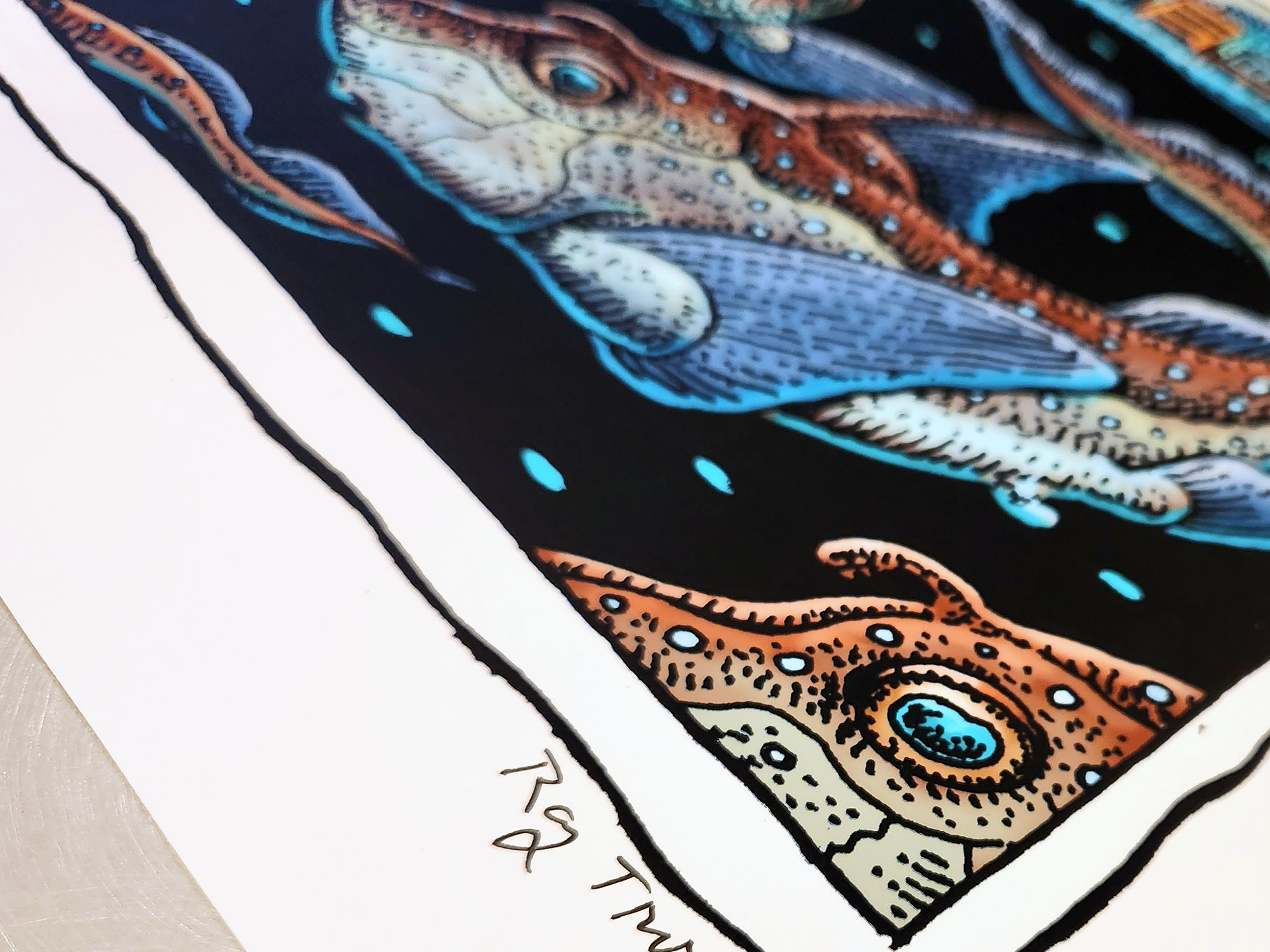 Ray Troll’s fine artwork printed with high quality, lightfast inks on heavyweight acid-free paper. Shipped in sturdy round tubes.