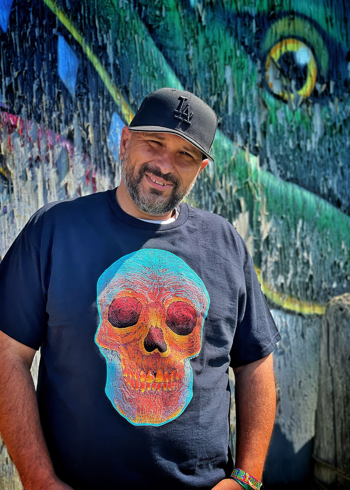 It took about four weeks to pencil out and ink the original image, then scan it and clean it up in photoshop. The crew at Post Industrial press printed the image super large on black T shirts using a reversed image of the original black and white drawing. I think it’s the biggest image we’ve ever attempted to print on a shirt in my line.
