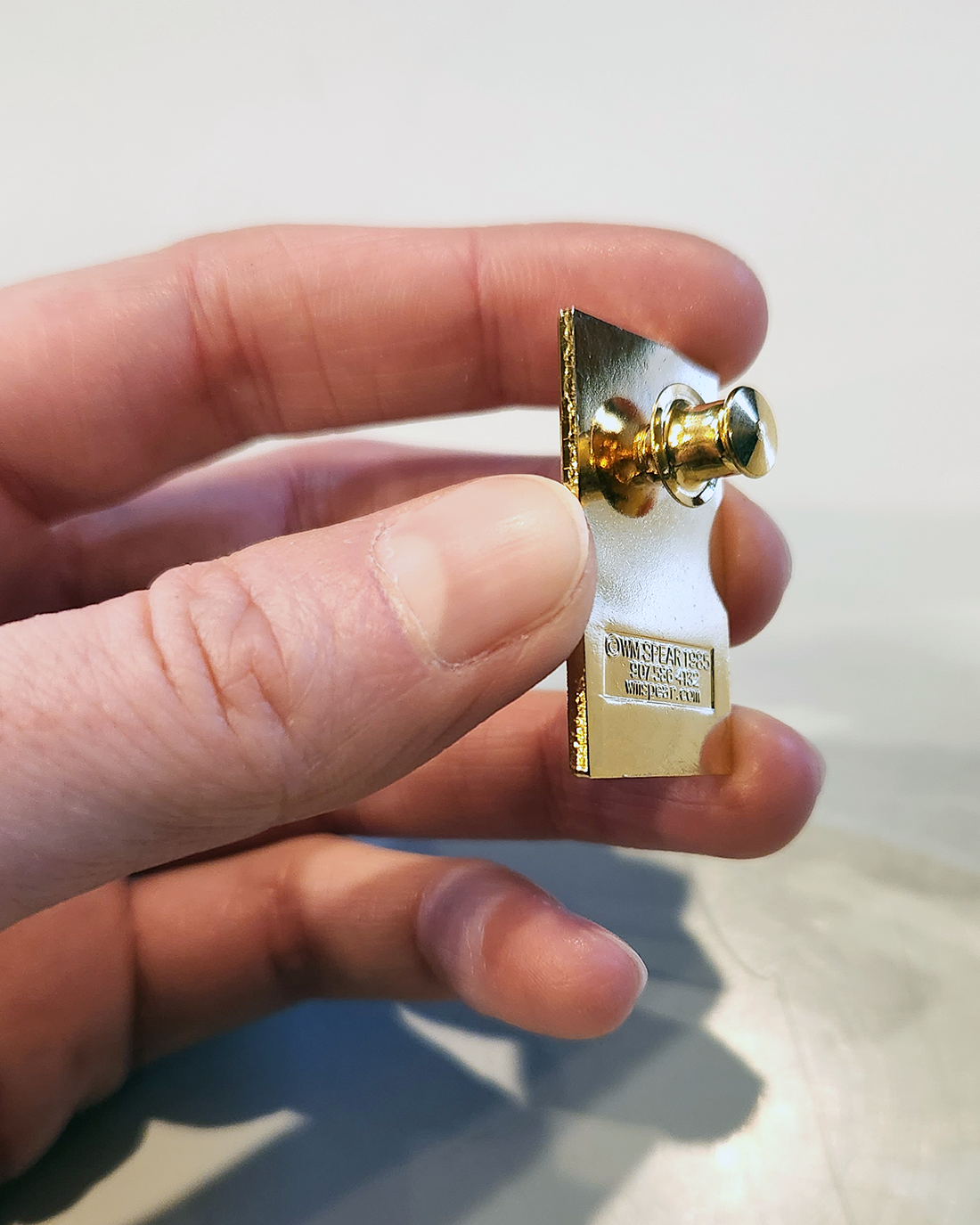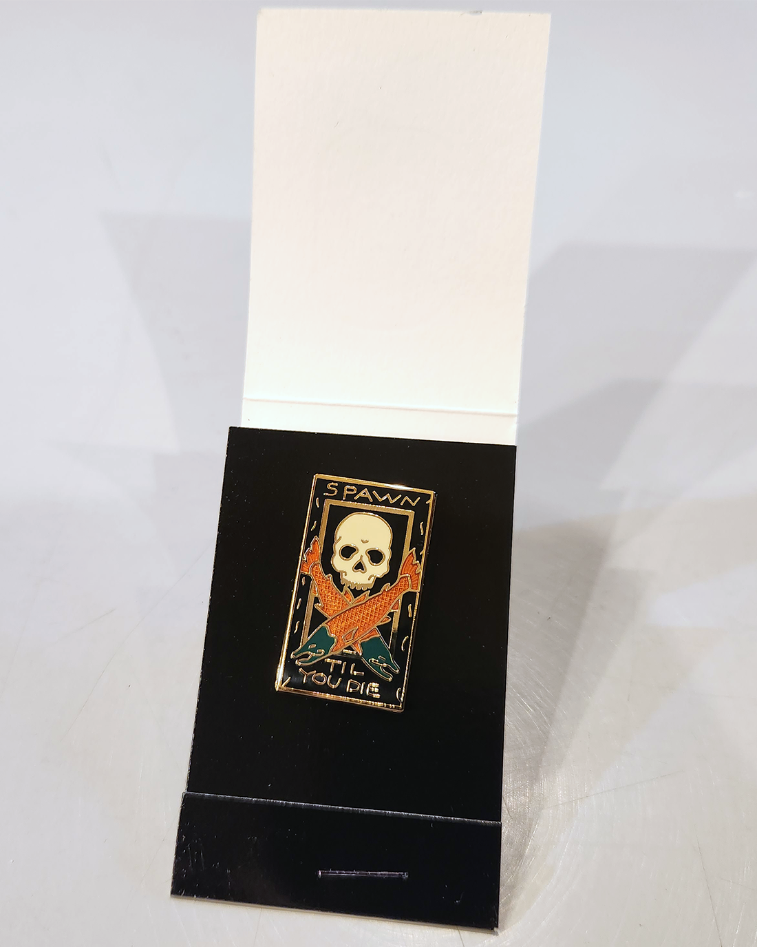 Ray Troll’s design on a beautifully enameled, hand-crafted pin manufactured by William Spear Design of Juneau, Alaska. The metal is copper that has been electroplated with gold.